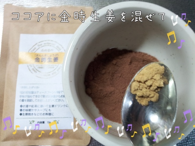 ココアも金時生姜も説明書き通りの分量を入れました。