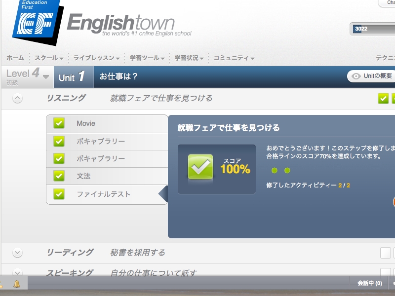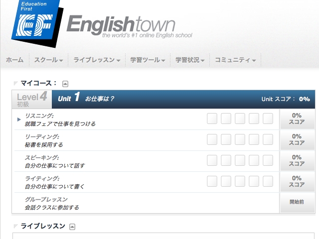 Englishtownに登録後、まずはサイト内を見てみました。